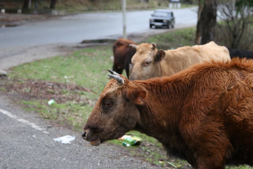 На территории Краснодарского края дороги замечательные, без ям, кочек и трещин, только ровное и гладкое дорожное покрытие, сопровождающееся указателями, отбойниками и различными конструкциями и сооружениями. К сожалению, об абхазской трассе такого сказать нельзя. Сопутствовать вам будут косогоры и ямки, меж которых спокойно, не обращая внимания на проезжающие мимо автомобили, бродят свободные коровы и быки.