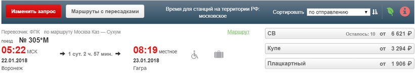 Из самой Пензы в Абхазию на поезде вы не доберетесь. Зато вы можете доехать в Гагру с пересадкой в Воронеже. Через этот город по четным числам месяца проходит московский состав, идущий в Сухум. В Воронеже у него запланирована остановка, продолжительностью минут в 10, в полшестого утра. В Гагру он прибывает в 8 утра следующего дня.