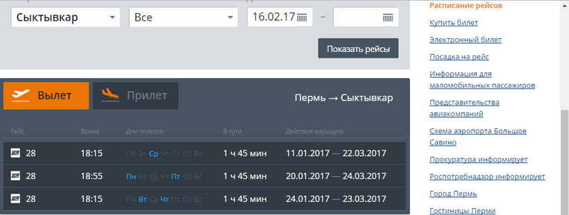 Я выбрала самый краткий путь, хотя его сложно таковым назвать. Если глянуть расписание на 16 число этого месяца, то можно увидеть, что будет 10 рейсов, один из которых в Вологду, а остальные в города которые я перечислила.