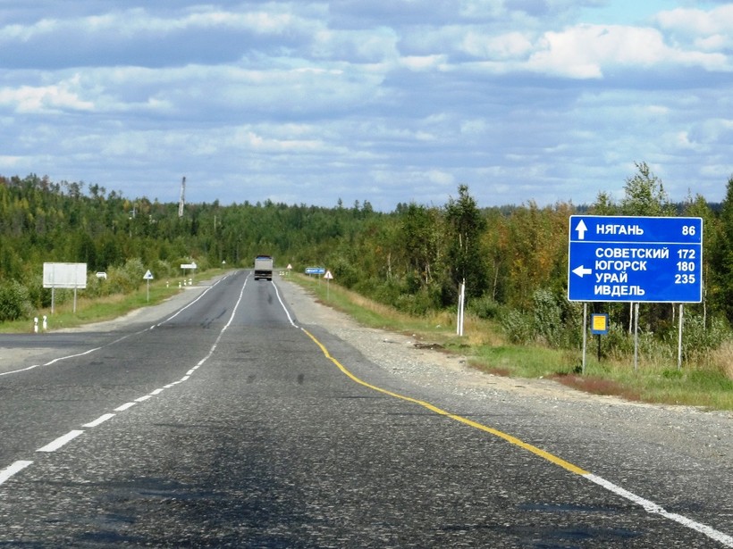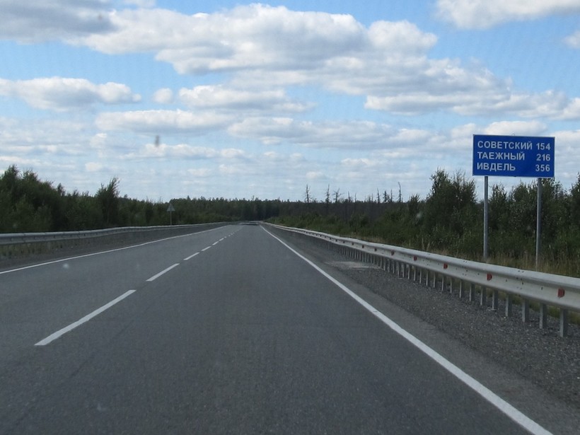 После Ивдели и до самого Югорска меня ждал очень хороший отрезок дороги. Приятно ехать по отличному покрытию с четкой разметкой. Машин практически не встречал здесь.