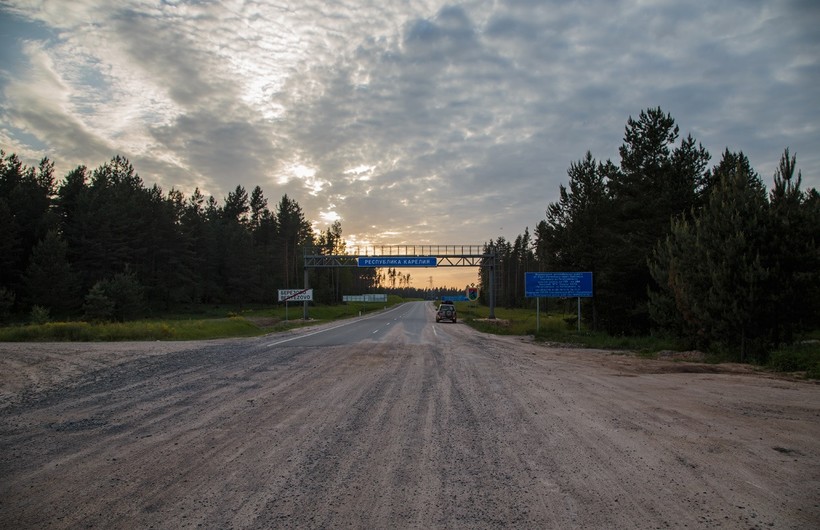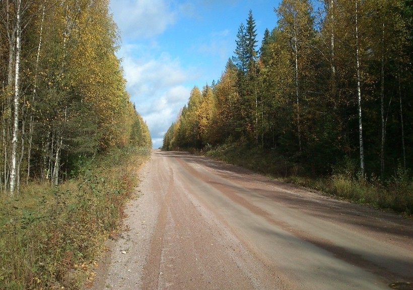 Доехал я до поселка Шуйская, а дальше на развязке свернул налево, в сторону озера Укшозеро. Далее дорога стала значительно хуже, появились ямы в большом количестве, трещины и повреждения. Пришлось сильно сбросить скорость на этом участке. Машин было мало, камеры и вовсе отсутствовали.