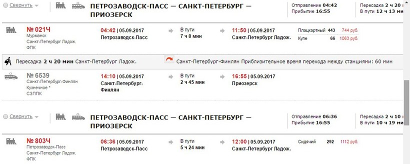 До Петербурга можно обойтись билетом в 745 рублей, а в Приозерск 326 рублей.