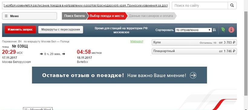 Проезд на поезде дальнего следования стоит от 1746 рублей до 3703.
