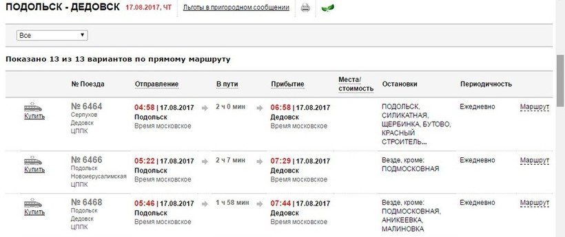 Ж/Д билеты Подольск – Дедовск