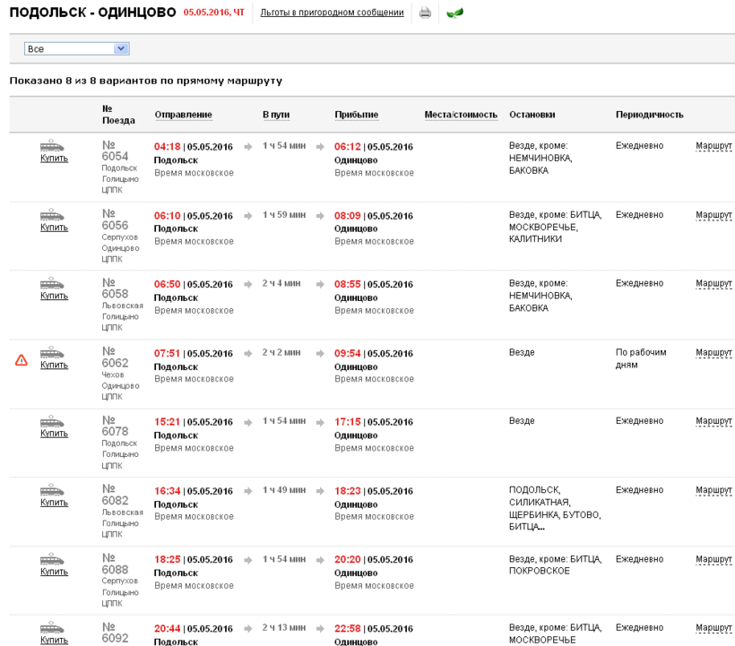 Из Подольска в Одинцово на поезде