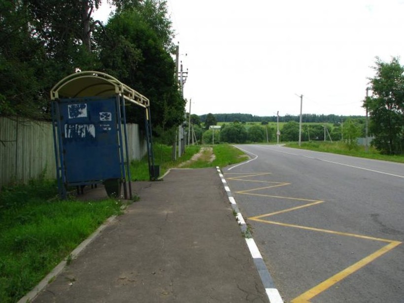 Не доезжая до конечного пункта, вам придется выйти на автобусной остановке у дороги. Выглядит она старенькой и расположена неподалеку от Жохово, да чего я рассказываю, если пешком идти пару минут.