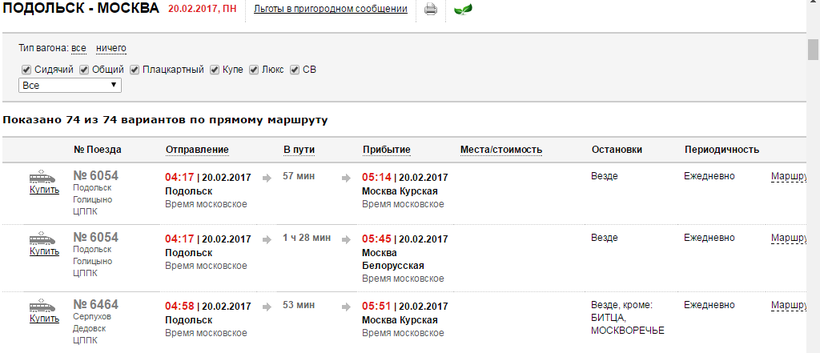 Самым оптимальным вариантом доехать до Химок будет электричка, однако прямых рейсов нет, и пересадочным пунктом будет Москва. В Подольске так же нет железнодорожного вокзала, а только небольшая станция. Я хочу показать расписание на следующий понедельник, чтобы вы увидели, что есть 74 рейса. По времени поездка занимается от 1 часа, так же хочу подметить, что электрички приходят на Курский вокзал или Белорусский. Первая отправляется рано утром в 04:17, а вот последняя ближе к ночи в 23:39.
