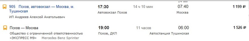 Добраться на автобусе можно через Москву. Автобус из Пскова от автовокзала отправляется в 17:30 и прибывает в Москву в 7:40 на Тушинский автовокзал. Также до Москвы можно добраться на маршрутке которая регулярно отходит от площади Ленина в 19:00 и прибывает к ст. м. Мякинино в районе 6 утра.