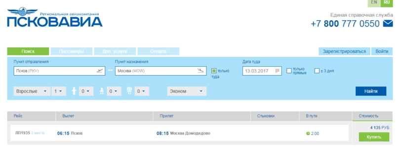 Стоимость перелёта из Пскова в Москву составляет 4135 рублей. А самый дешёвый перелёт из Москвы в Калининград обойдётся вам в 2000 рублей.
