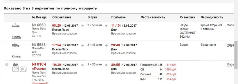 Используйте этот вариант только тогда, когда упустите автобусный маршрут, потому что сделать надо не одну пересадку и это не только неудобно, но и дорого. От железнодорожного вокзала Пскова надо доехать до станции «Дно».