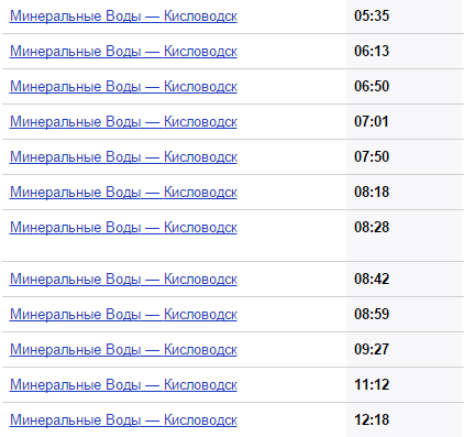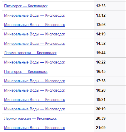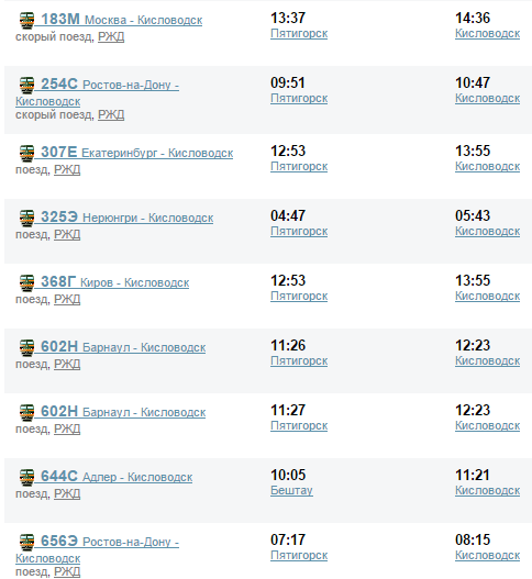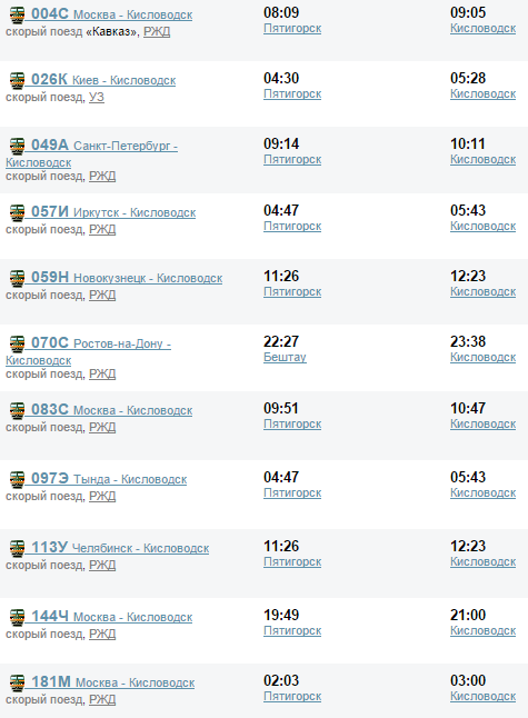 РЖД предлагает очень много вариантов проезда по направлению Пятигорск-Кисловодск.