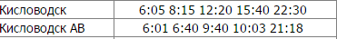 2) Москва - Кисловодск, отправление из Пятигорска в 20:35, прибытие в Кисловодск в 21:29. Периодичность - по четвергам и воскресеньям.