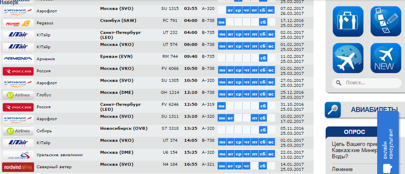 Аэропорт Минеральных Вод не выполняет рейсы до Белгорода и вам снова придется добираться через Москву, а с рейсами до нее никогда не бывает проблем, так как они есть ежедневно. Вы можете сами в этом убедиться, если глянете на скриншот.