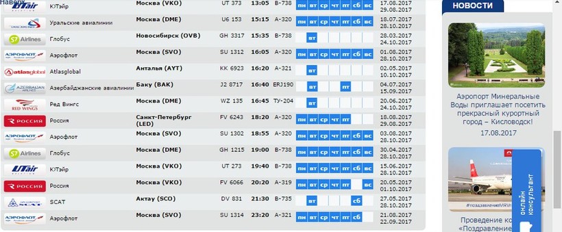 Перелет будет длительным, но зато не 5 суток как на поезде. Сначала вам надо понять, что прямых рейсов нет и надо выбрать город, где бы вы могли сделать пересадку. Я решила, что полечу через Новосибирск, так как это рационально в плане времени и средств. Из Минеральных Вод (в Пятигорске нет аэропорта) летает в него дочерняя компания «Глобус», которая, по сути, является S7. Перелет занимает 4 с лишним часа, а потом посадка в Толмачево. А рейсы есть только по вторникам по одному в 15:35.