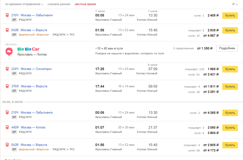 Особенно в летнее время данное направление популярно, поэтому не составит труда уехать из Ярославля до Котласа.
