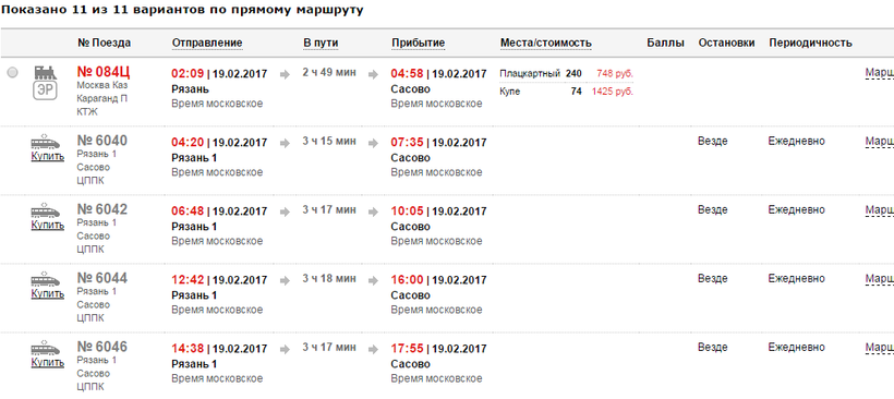Если в качестве примера взять 19 февраля, то вы увидите, что есть 11 рейсов и уехать можно в течение дня. Первый рейс отправляется в 02:09, а вот последний поздно вечером в 22:38. Вот здесь можно глянуть расписание на любой день.