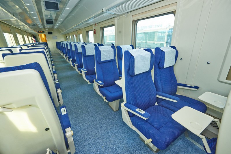 В состав фирменного поезда входят 5 вагонов с сидячими местами и один вагон купейного типа. Все вагоны современно оснащены, внутри имеются мягкие и удобные кресла, биотуалеты, кондиционеры.