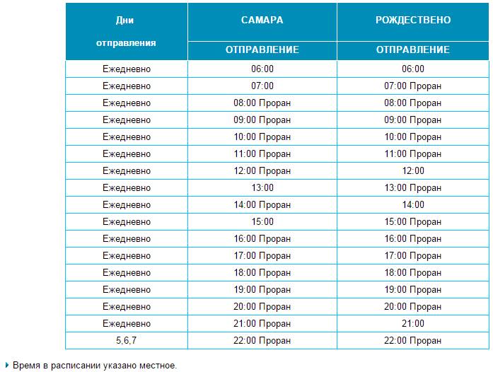 Расписание движения судов по маршруту "Самара - Проран - Рождествено":