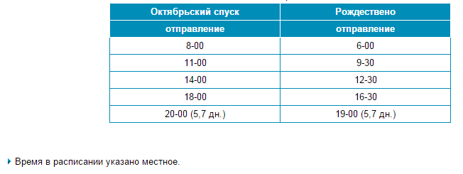 Расписание движения судов по маршруту "Октябрьский спуск - Рождествено":