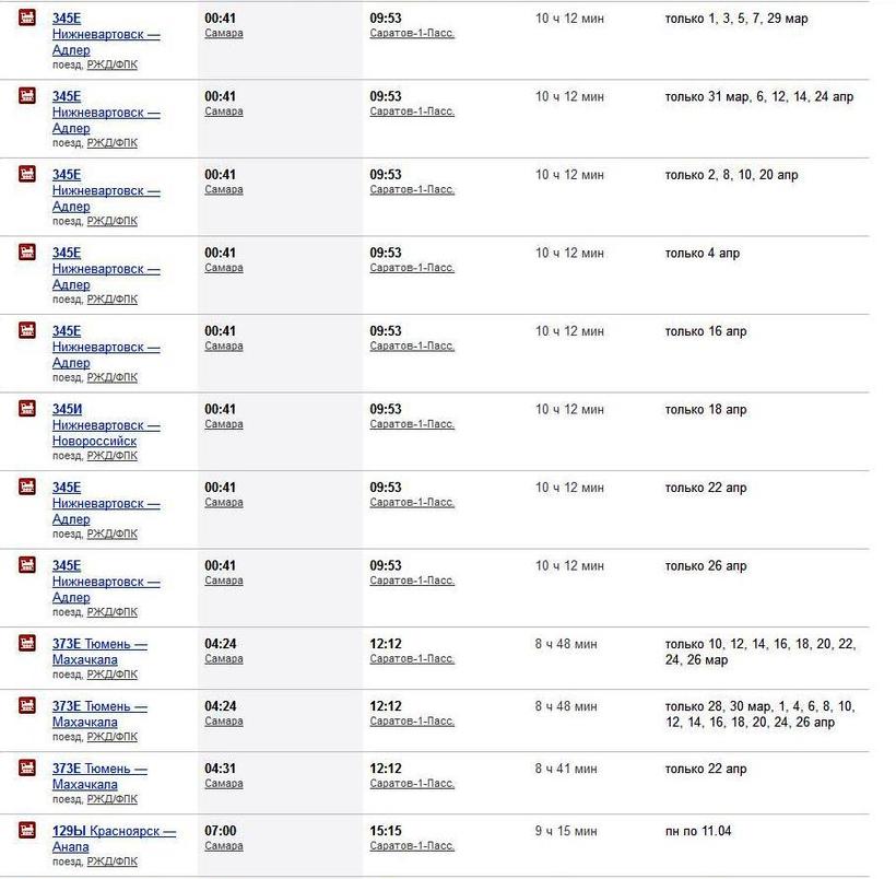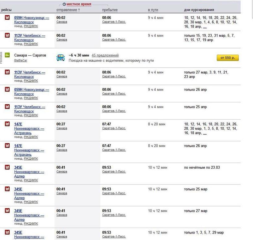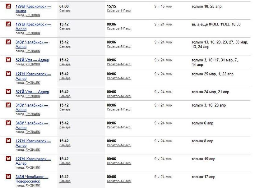 Из Самары в Саратов можно уехать ежедневно. Несколько раз в день по этому маршруту проходят транзитные поезда. Посмотреть расписание поездов по маршруту вы можете на скринах расписания.
