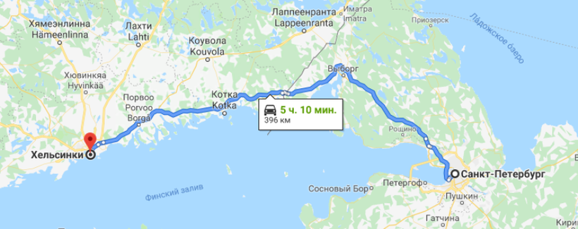 Санкт-Петербург — Хельсинки — маршрут на карте