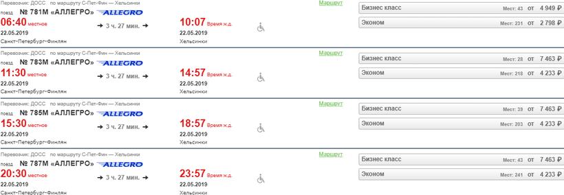 Ежедневно с Финляндского вокзала Петербурга (пл. Ленина, 6) отправляются в Хельсинки поезда в: