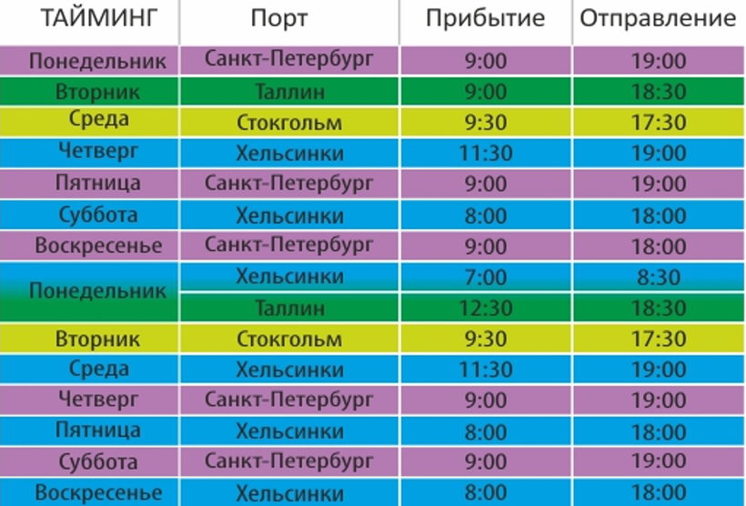Курсируют по маршруту паромы компании St. Peter Line по пятницам и воскресеньям и по четвергам и субботам (через неделю).