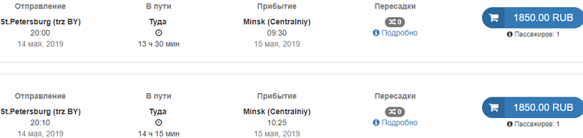 Билет до Минска из Петербурга обойдется от 1850 руб.