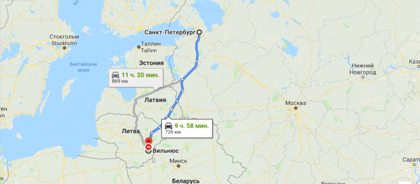 Расстояние от Санкт-Петербурга до Вильнюса