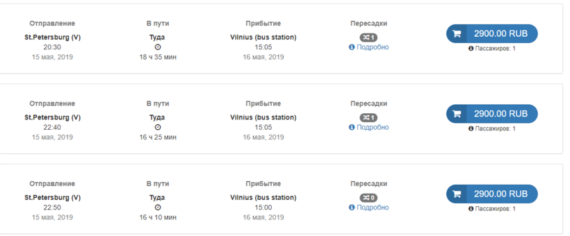 Мне очень забавно и непонятно, но почему-то билеты и на прямые автобусы, и на рейсы с пересадками стоят одинаково. За проезд до Вильнюса нужно будет заплатить 2900 рублей (40 евро).