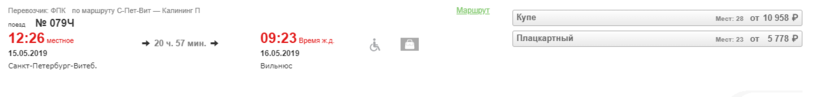 Любителей железнодорожной романтики спешу обрадовать. Есть прямой поезд до Вильнюса из Питера (кстати, он появился не так давно, месяцев 7 назад вроде бы такого еще не было). Поезд ходит через день, по нечетным числам.