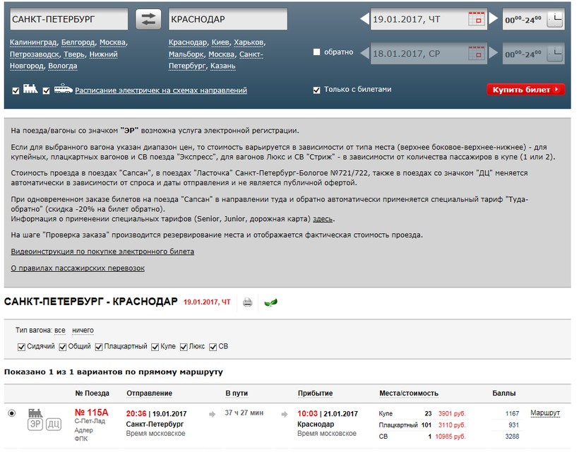 Цены на проезд в зимнее время и в разгар летнего сезона очень отличаются. Цена билета осенью, зимой и весной - 2000-2500 рублей. На новогодние праздники и летом цены вырастают до 3500-4500 рублей и выше. Есть льготные условия проезда для детей и студентов.