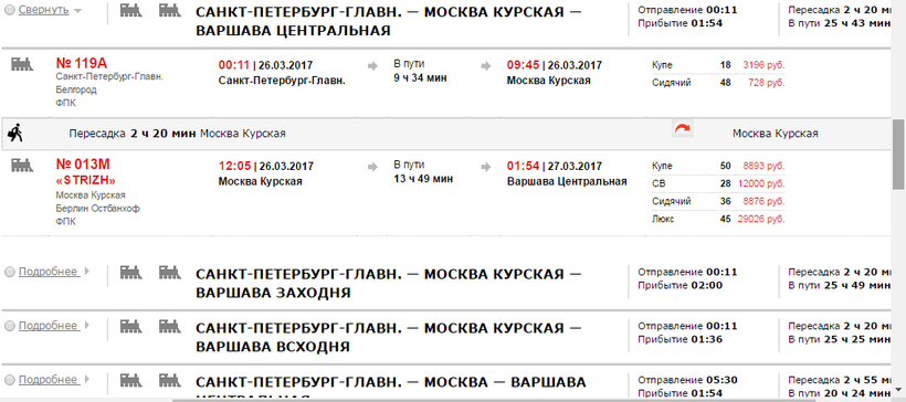 - До Москвы от 722 рублей, а до Варшавы от 8893.