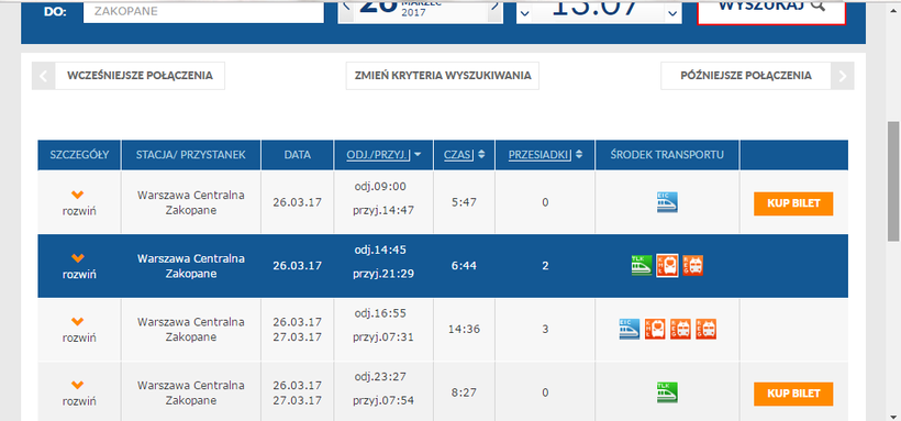 Билет до Москвы и Варшавы можно приобрести на сайте РЖД, а вот до Кракова и Закопане только на месте в кассах или же онлайн на сайте вокзала.