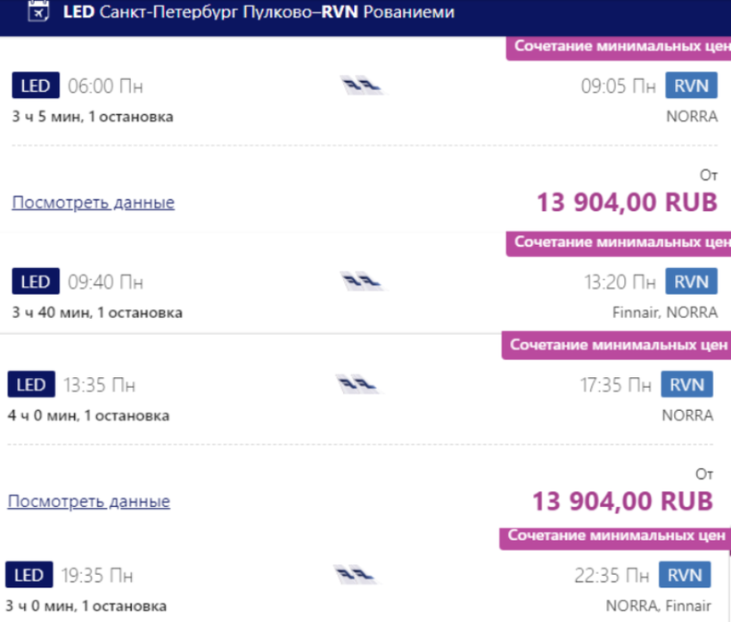 Перелет в Рованиеми обойдется от 13900 руб. или 193 евро.