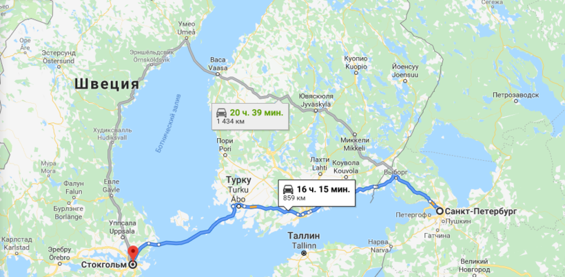 Санкт-Петербург — Стокгольм — маршрут на карте