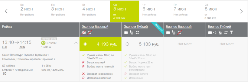 Я когда узнала цену прямого рейса от авиакомпании SAS, которую я очень люблю, меня жаба просто задушила. Лично мне лучше летать с S7 Airlines, ибо разница в цене билетов просто колоссальная. Но расскажу про оба прямых рейса, начну с SAS. Самолет вылетает из аэропорта «Пулково» в стокгольмский аэропорт «Арланда» каждый день, но в разное время. Есть самолеты в 17:20, 15:05, 16:05. Собственно, от этого и зависит цена билета. Но время полета всегда остается неизменным, всего 1 час и 20 минут. Кстати, сейчас сотрудники авиакомпании бунтуют, рейсы массово отменяются. Надо будет следить за ситуацией, если надумаете в ближайшее время лететь с ними.