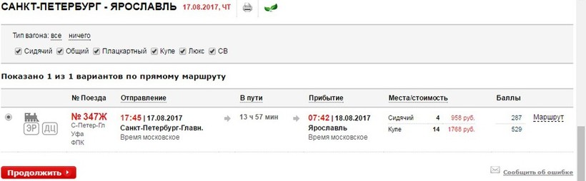 Думаю, вы заметили, что в каждом варианте главной точкой пересечения выступает Ярославль и здесь не исключение. В принципе, по времени ехать на пару часов дольше, чем на автобусе, но дешевле, что удивительно, поэтому хорошо подумайте. Сесть можно на поезд, который из Петербурга направляется в Уфу, это ежедневный состав, а отправляется в 17:45. Ну, собственно, и все. Конец пути снова на автобусе, поэтому я приветствую данный способ, потому что можно сберечь средства.