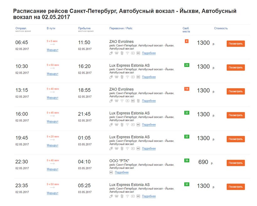 Ниже приведена информация о том, сколько часов вам потребуется, чтобы добраться от Санкт-Петербурга до Йыхви, а также приведена примерная стоимость проезда (средняя цена билета) на том или ином виде транспорта.