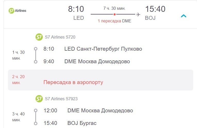 Но перейду к самому перелету из Санкт-Петербурга в Бургас. К сожалению, прямое авиасообщение между этими населенными пунктами отсутствует. Добраться из Питера до Бургаса можно только с пересадкой. Ее оптимальнее всего сделать именно в Москве. Вот один из вариантов.