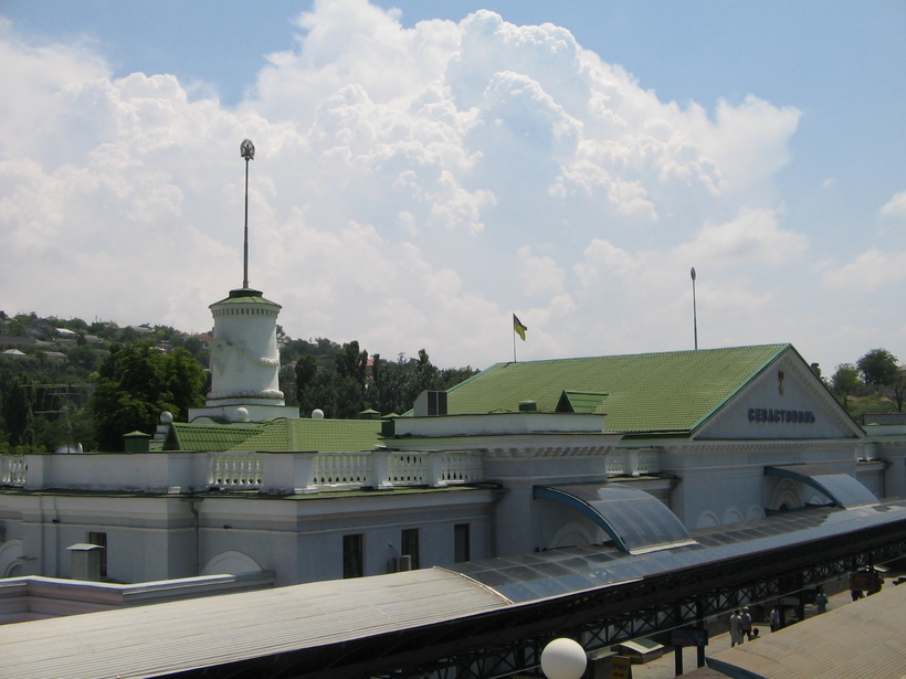 От железнодорожного вокзала едим электричкой Севастополь - Симферополь до Инкермана. Время в пути 11 минут, стоянка 1 минута. Чем интересен этот коротенький маршрут? Тоннелями, их на этом коротком отрезке пути – 6 !!! Тоннели начинаются, как только вы отъехали от жд, часть железнодорожной ветки проложена по территории судостроительного завода, остальная часть – вдоль Севастопольской бухты.