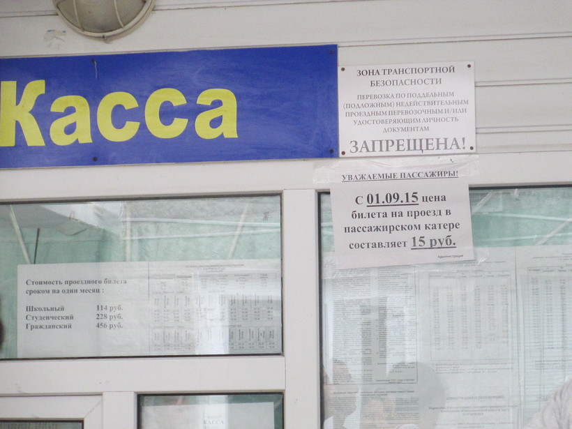 Билет стоит 15 рублей, продает контролер у входа на причал при посадке.