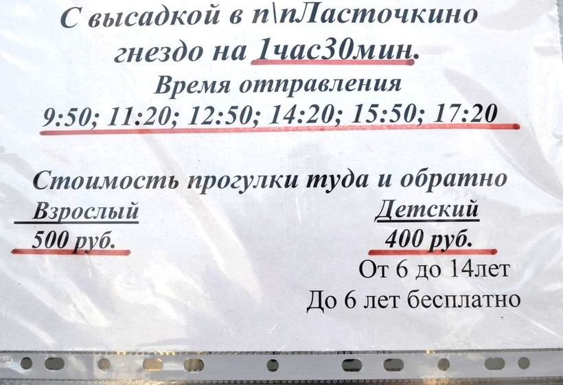 Есть экскурсионные катера. Если вы выберете такой катер, то во время плавания вам проведут краткий экскурс в историю Ласточкиного гнезда. Затем вы высадитесь на берег и поднимитесь к замку. В вашем распоряжении будет 1-1,5 часа свободного времени. Затем вам нужно будет вернуться на причал и отправиться обратно в Ялту.