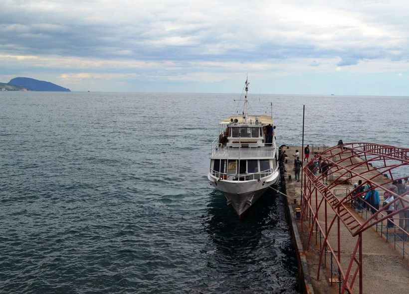 Третий вариант тоже предполагает пересадку в Ялте. Доезжаете до автовокзала, оттуда добираетесь до причала морских судов. Оттуда можно отправиться в морскую прогулку к Ласточкиному гнезду. Катера отправляются к замку примерно раз в полчаса. Есть суда, предлагающие поездку в одну сторону.