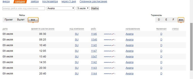 Я специально сделала для вас скриншот, чтобы вы видели, что в день бывает много рейсов, и все они распределены в течение дня. Авиакомпания «Аэрофлот» доставит в аэропорт Анапы через 2 часа и на этом все. Поскольку все было довольно просто, то я даже не стала долго думать, чтобы променять поезд на самолет.