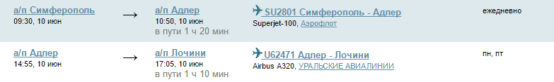 Обратите внимание, что самолет из Адлера лишь по пятницам и понедельникам!