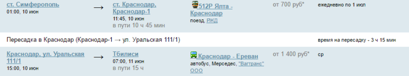 - Первый вариант поездом до Краснодара, после автобусом в Тбилиси: