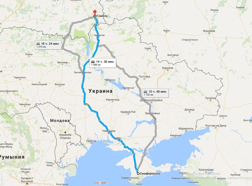 Я ехала на автомобиле, поэтому могу точно рассказать обо всех нюансах, поджидающих вас в дороге. Между Симферополем и Гомелем 1100 км, значит в пути вы проведете в среднем чуть больше суток, если нигде не останавливаться надолго.