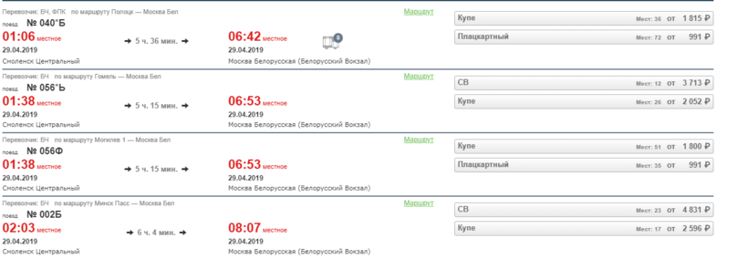 Ниже приведена информация о том, сколько часов вам потребуется, чтобы добраться от Смоленска до Риги, а также приведена примерная стоимость проезда (средняя цена билета) на том или ином виде транспорта.