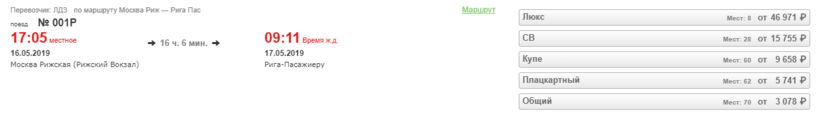 Поезд тоже комфортабельный, новый и современный, есть все удобства. Отправляется с Рижского вокзала, а приезжает на станцию Рига-Пасажиеру через 16 часов после отправления.